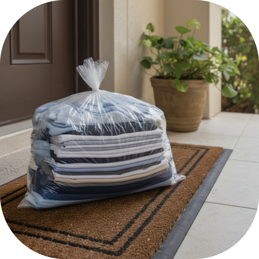Next, we’ll pick up your laundry, wash, dry and fold it.